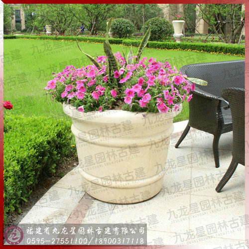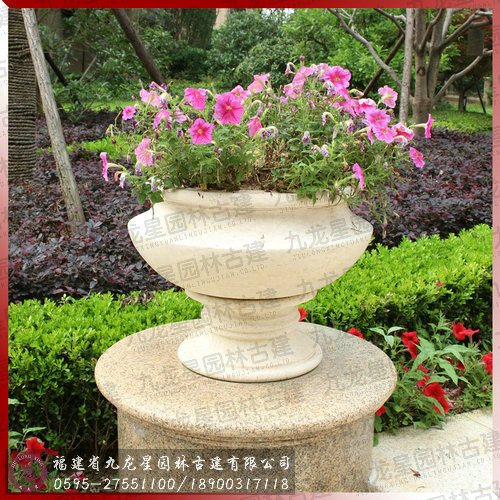 埃及米黃花缽-房地產(chǎn)樓盤小區(qū)石雕案例高清圖