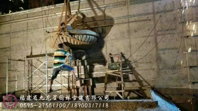 卡麥石雕半壁水缽現(xiàn)場安裝