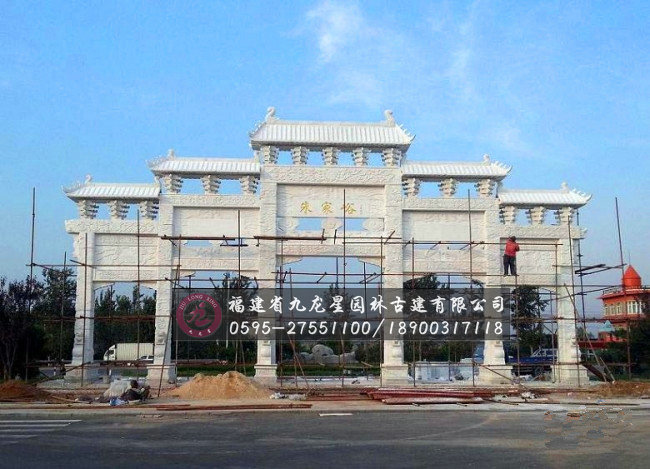 石雕牌坊,也叫石雕牌樓、山門,漢族特色建筑文化之一。最早見(jiàn)于周朝,最初用于旌表節(jié)孝的紀(jì)念物,后來(lái)在園林、寺觀、宮苑、陵墓和街道均有建造,北京是中國(guó)牌樓最多的城市。石雕牌坊用各種石料來(lái)進(jìn)行塑造,創(chuàng)造出具有一定空間的可視、可觸的建筑裝飾物,借以反映社會(huì)生活、表達(dá)意義。