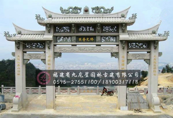 牌樓最早是由木門的演變而來的,是中國傳統(tǒng)建筑藝術的結晶,是裝飾效果極強的標志性建筑。現在石雕牌坊與石雕牌樓的名稱現在都在混用,但是在最初石雕牌坊和石雕牌樓在設計結構上是有很大的不同的。首先,石雕牌樓上面有一個斗拱和屋頂,它有更大的烘托氣氛。而石雕牌坊在設計結構上就比較簡單了,但是由于它們都是我國古代用于表彰、紀念、裝飾、標識和導向的一種建筑物,而且又多建于宮苑、寺觀、陵墓、祠堂、衙署和街道路口等地 方,再加上長期以來老百姓對“坊”、“樓”的概念不清,所以到最后兩者成為一個互通的稱謂了。