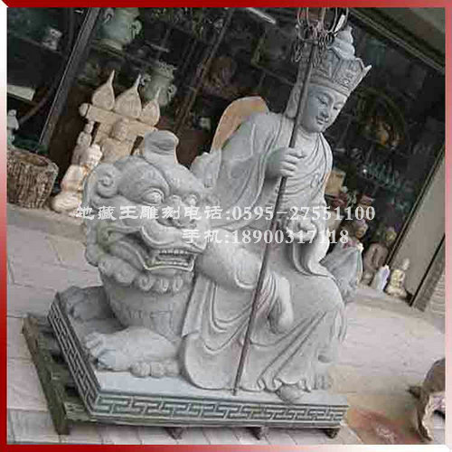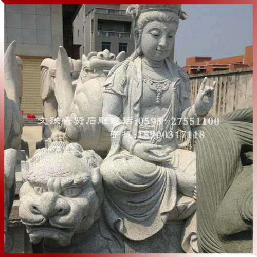 文殊菩薩:大智文殊菩薩右手高舉慧劍,寓意斬斷煩惱。左手持蓮,且蓮上通常還有經(jīng)卷