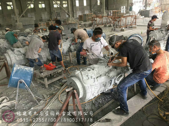 大量石雕青石龍柱現(xiàn)場(chǎng)加工中