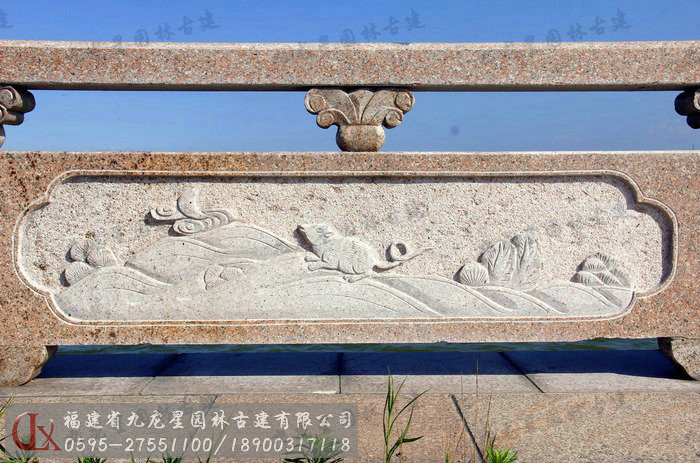 河道石欄桿 12生肖浮雕護(hù)欄石材加工