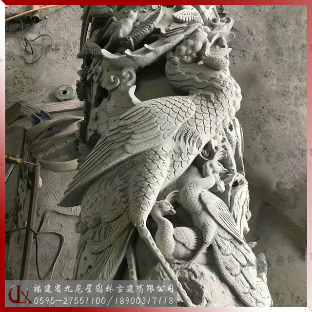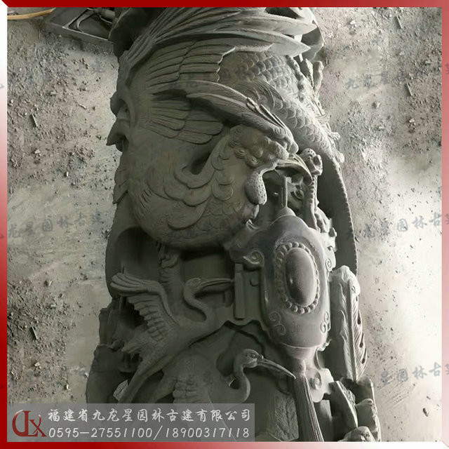 石雕龍鳳柱傳統(tǒng)裝飾石雕用品,適用于宗教寺廟、園林古建、祠堂建筑美化裝飾。福建惠安工藝好的龍鳳柱石雕加工廠選擇九龍星園林古建