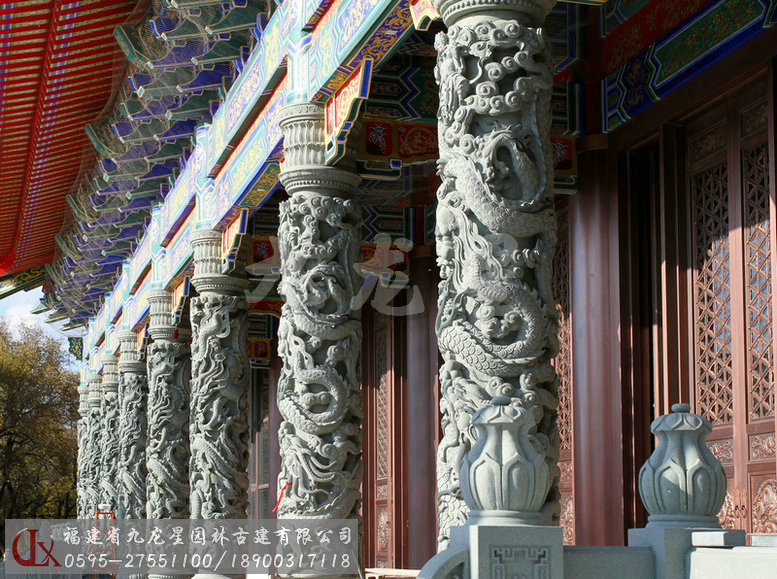 九龍星園林古建加工的寺廟石雕龍柱有單龍柱、雙龍柱、滾龍柱、盤(pán)龍柱、蟠龍柱、華表柱、龍鳳柱、八仙龍柱、青石龍柱等多種造型雕刻。我們通過(guò)專(zhuān)業(yè)且標(biāo)準(zhǔn)化的采購(gòu)渠道,甄選優(yōu)質(zhì)的礦料,加工的寺廟石雕龍柱,大批量應(yīng)用于寺廟建筑裝飾美化,贏得客戶(hù)好評(píng)。