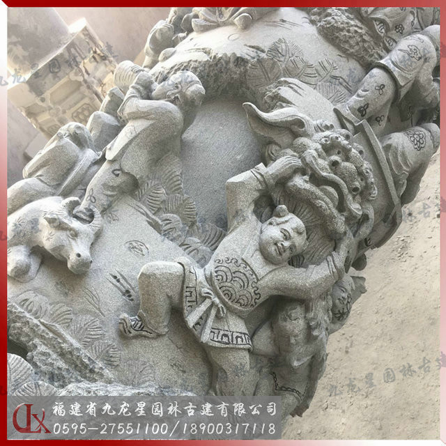 百子柱石雕加工局部細(xì)節(jié)圖來(lái)源于九龍星園林古建。