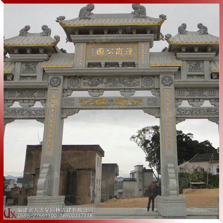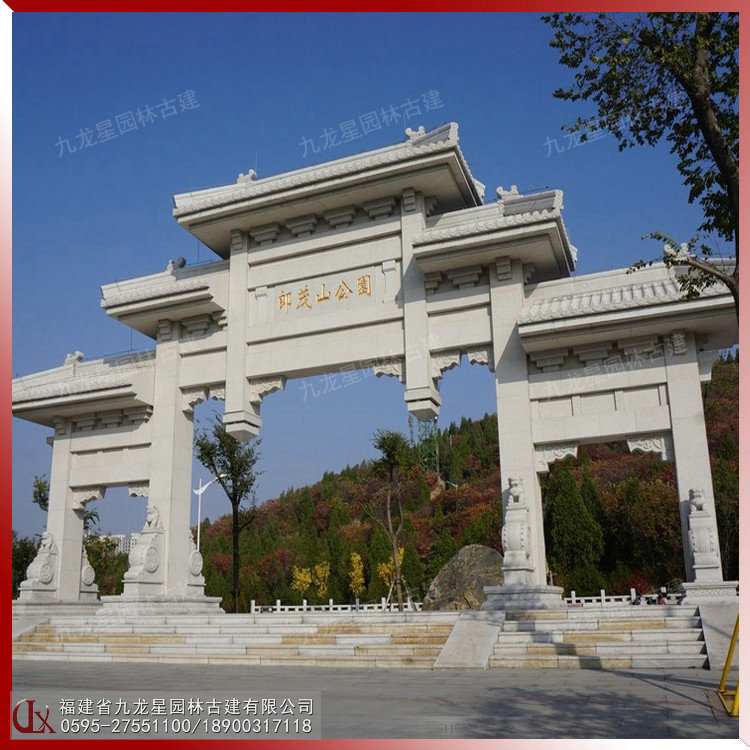 石牌坊是用石材修建的一種建筑類型,不僅結構自成一格,別具風采,而且集雕刻、繪畫、匾聯文辭和書法等多種藝術于一身,熔古人的社會生活理念、封建禮教、封建傳統道德觀念、古代的民風民俗于一爐,具有瑰麗的藝術魅力、很高的審美價值和豐富而深刻的歷史文化內涵。三門石牌坊就是建有三個門的石雕牌坊樣式,適用于寺廟景區(qū)、園林廣場、別墅小區(qū)、村莊路口等裝飾擺設。