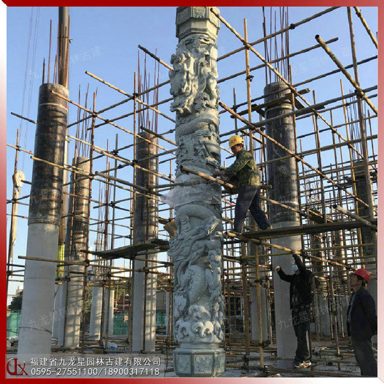 石龍柱雕刻石雕龍柱圖片,柱子上面雕刻有精美的龍圖案,龍的變化千姿百態(tài),風(fēng)格不同,有的一層壓一層的深浮雕,盤旋在柱子上的龍頭一般鼓出柱子一點來,升龍呈沖天之勢,祥云饒身,威武豪氣。潛龍下探九幽,神秘異常。