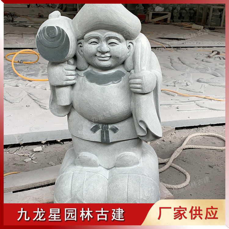 大黑天神的形態(tài),多數(shù)是面帶笑容,右手拿打金錘(賜財福),左手則執(zhí)著米袋(代表豐衣足食)。