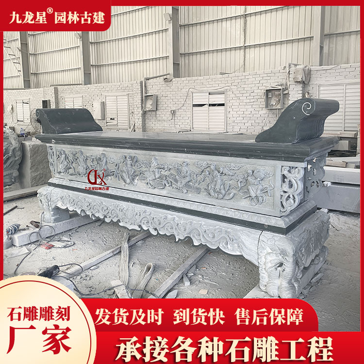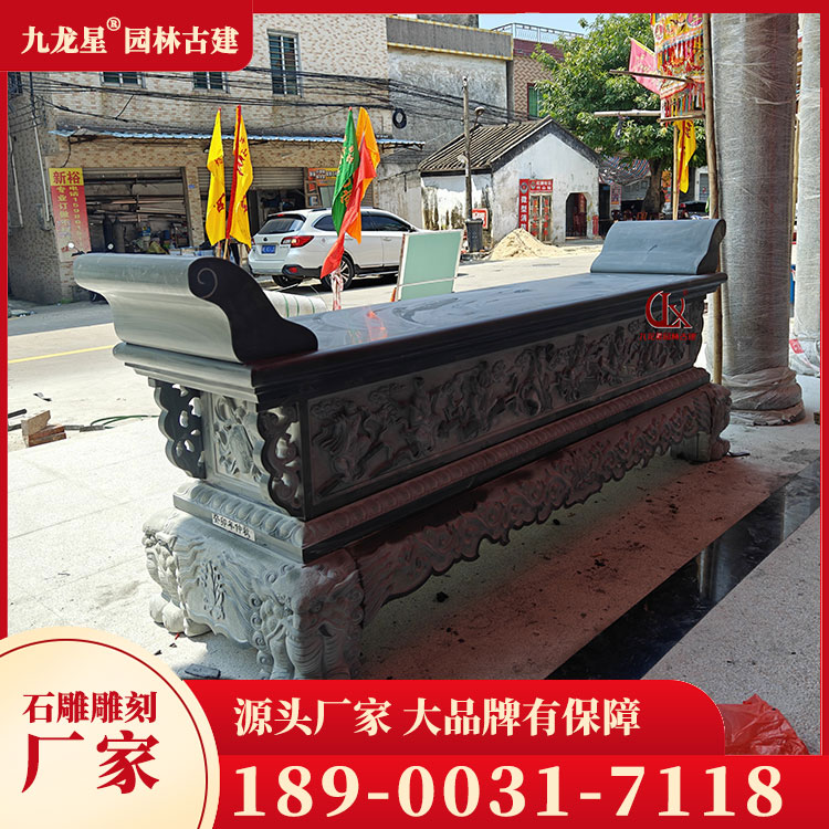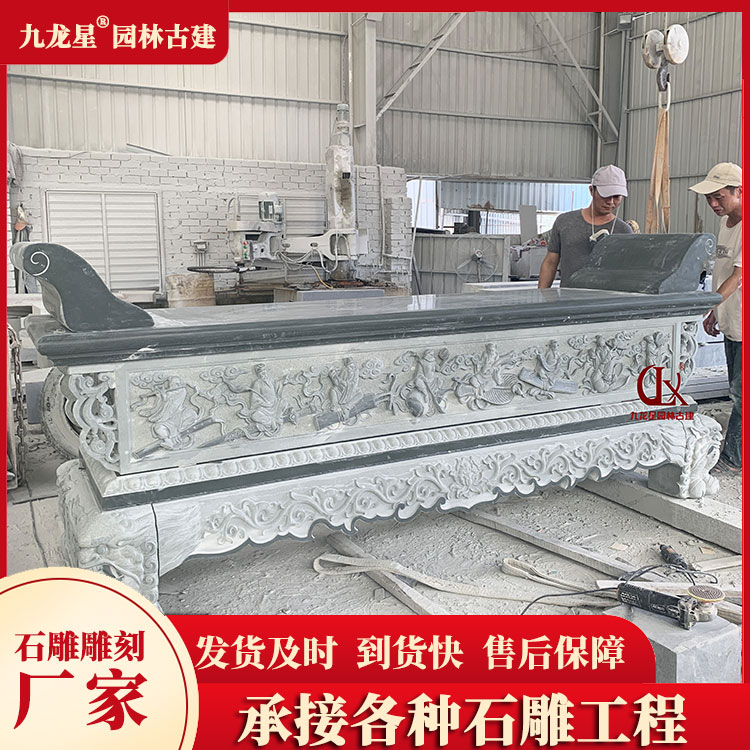 石雕供桌作為祭祀、宗教活動的重要器具,得到了廣泛的應用。尤其是在寺廟、道觀等宗教場所,石雕供桌更是成為了一種必不可少的陳設。