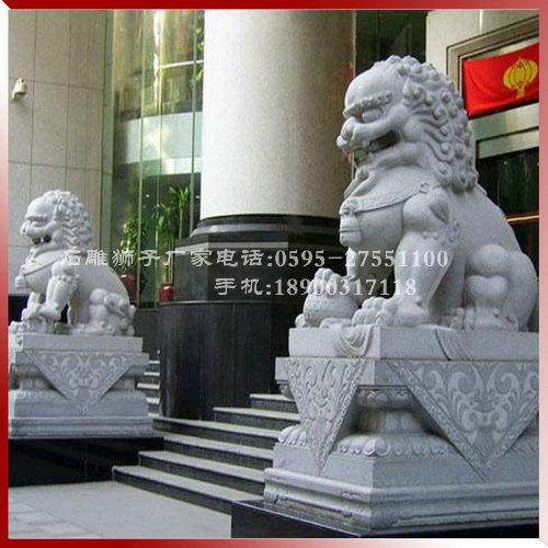獅子原產(chǎn)地在非洲、印度、南美等地。一千九百年前的漢武帝時代,張騫出使西域,一條絲綢之路,打通了中國與西域各國的交往,獅子進入中國。從此,這遠道而來的獅子開始走入中國人的民俗生活,受以重任,國人視其為吉祥之物,并希望用獅子威猛的形象驅(qū)魔趕邪,造成獅形以鎮(zhèn)壓或以示威武。故在中國眾多的園林名勝中,各種造型的石獅子隨處可見。在古代的官衙廟堂、豪門巨宅大門前,都擺放一對石雕獅子用以鎮(zhèn)宅護衛(wèi)。直到現(xiàn)代,這種安放石獅子的習俗更加濃厚,許多建筑物大門前就有雙獅守衛(wèi)。