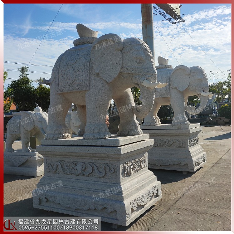 雕刻大象的石雕 馱元寶石雕大象圖片 造型華麗