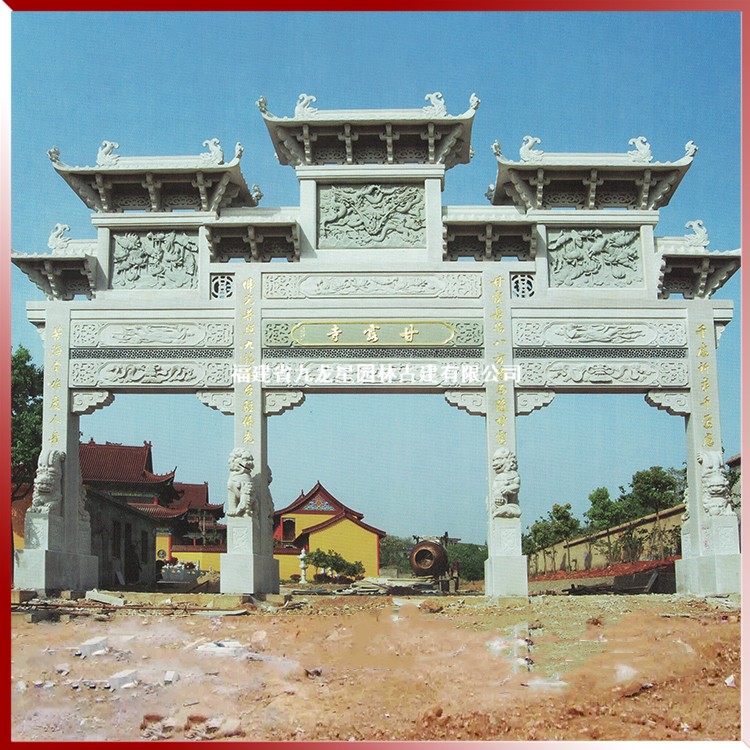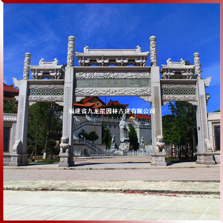 寺廟石雕山門牌坊生產(chǎn)加工,就到九龍星園林古建。常年承接各種造型石牌坊加工制作,石雕牌坊案例經(jīng)驗(yàn)豐富。公司坐落于“中國石雕之都”福建省惠安縣,是一家集石材創(chuàng)作、加工、安裝、銷售于一體的石材石雕專業(yè)生產(chǎn)企業(yè)。提供豐富的石雕山門牌坊相關(guān)商品信息,包括石雕牌坊設(shè)計(jì)、價(jià)格、批發(fā),涵蓋石雕牌坊圖片、型號、規(guī)格參數(shù),支持來圖來樣定做加工。