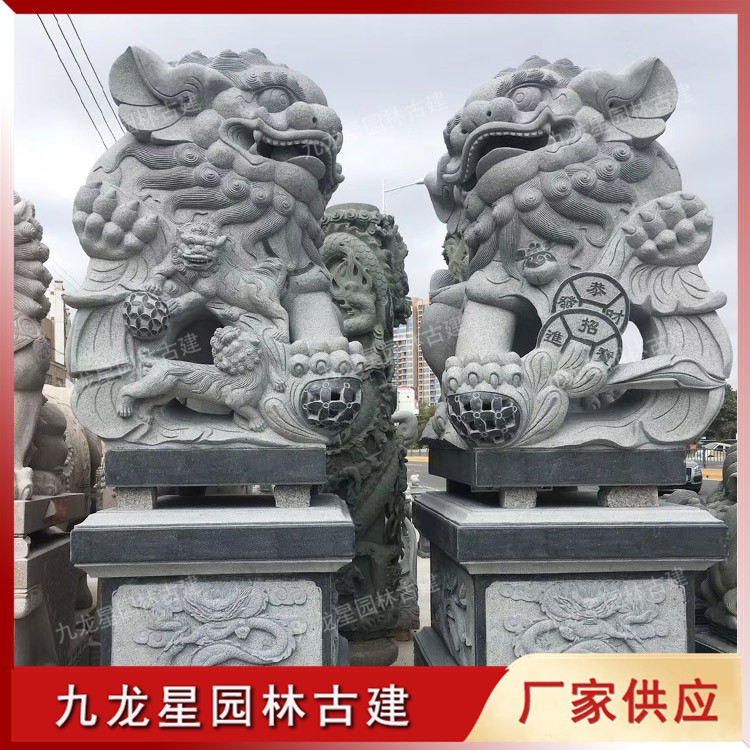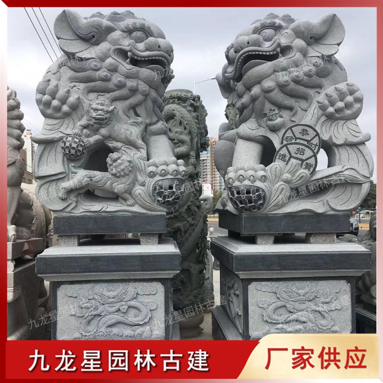 石雕南獅,南方石雕獅子廠家推薦選擇九龍星園林古建。供應(yīng)石雕獅子造型有北京獅、獻錢獅、網(wǎng)球獅、港幣獅,石獅子用料有青石、大理石、花崗巖。提供石雕獅子各種材質(zhì)、類型、類別、豐富的產(chǎn)品信息,幫助您選擇更好的石雕獅子產(chǎn)品?;莅彩裨搭^廠家,價位合理,支持來圖來樣定制加工。