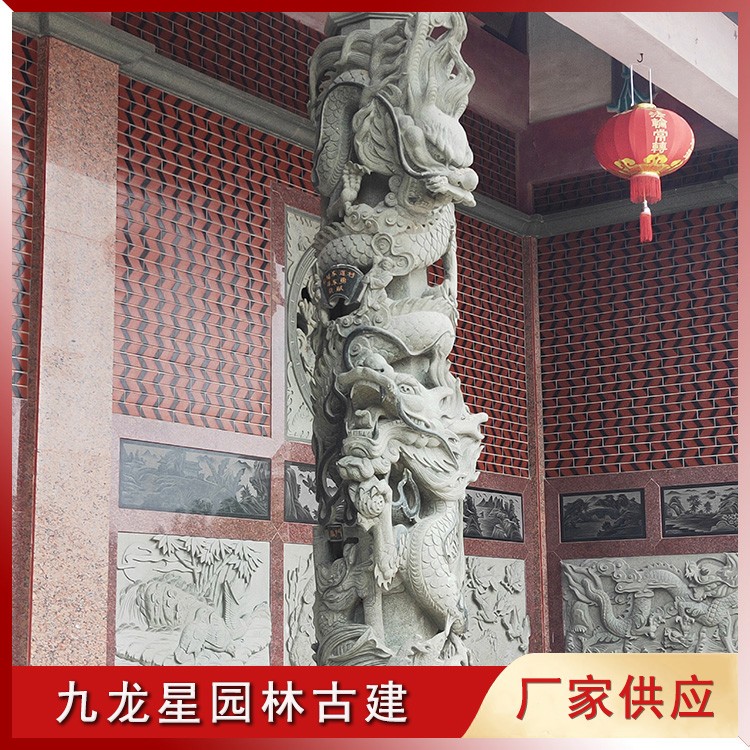 盤龍柱石雕 青石雕龍柱 寺廟石雕龍柱的應(yīng)用 九龍星